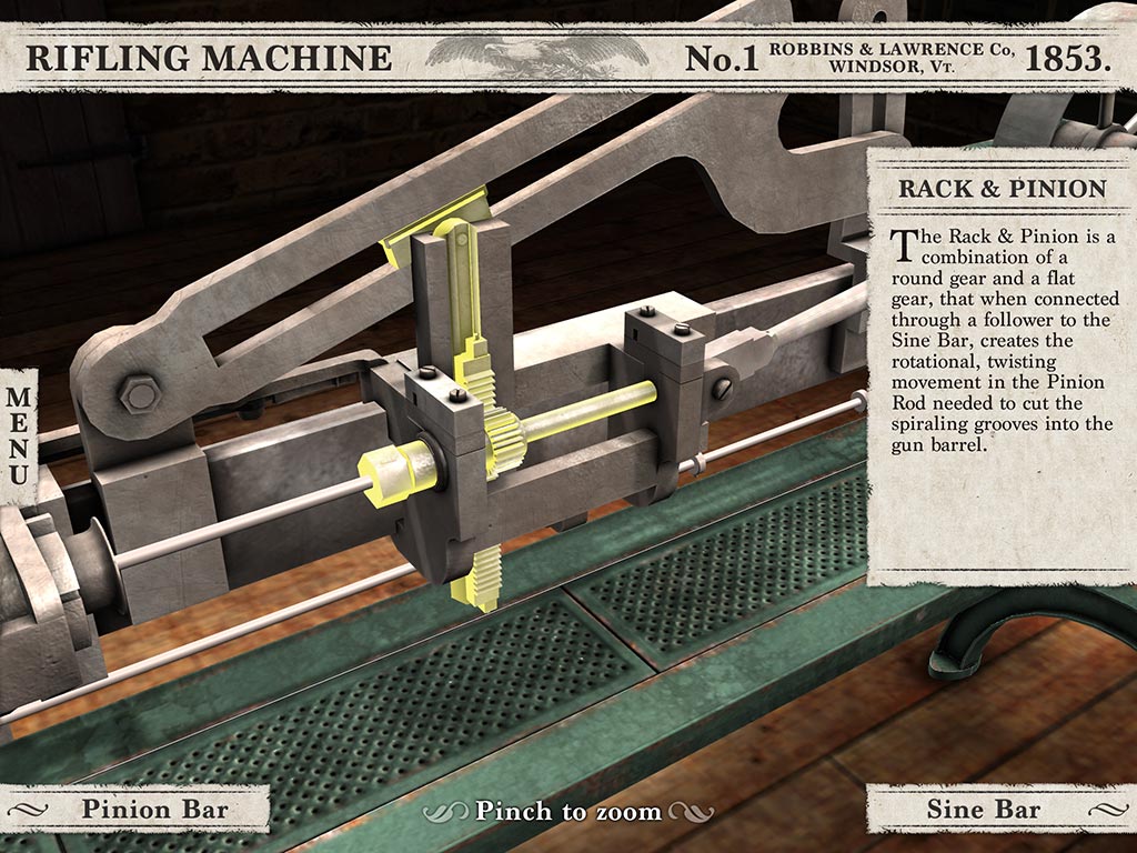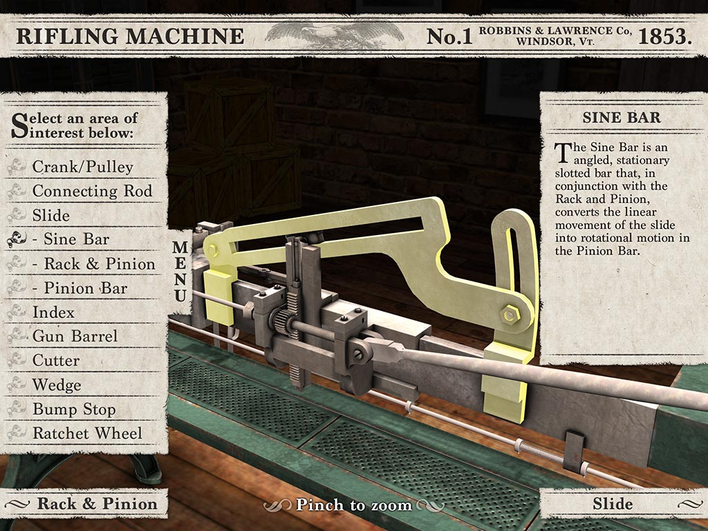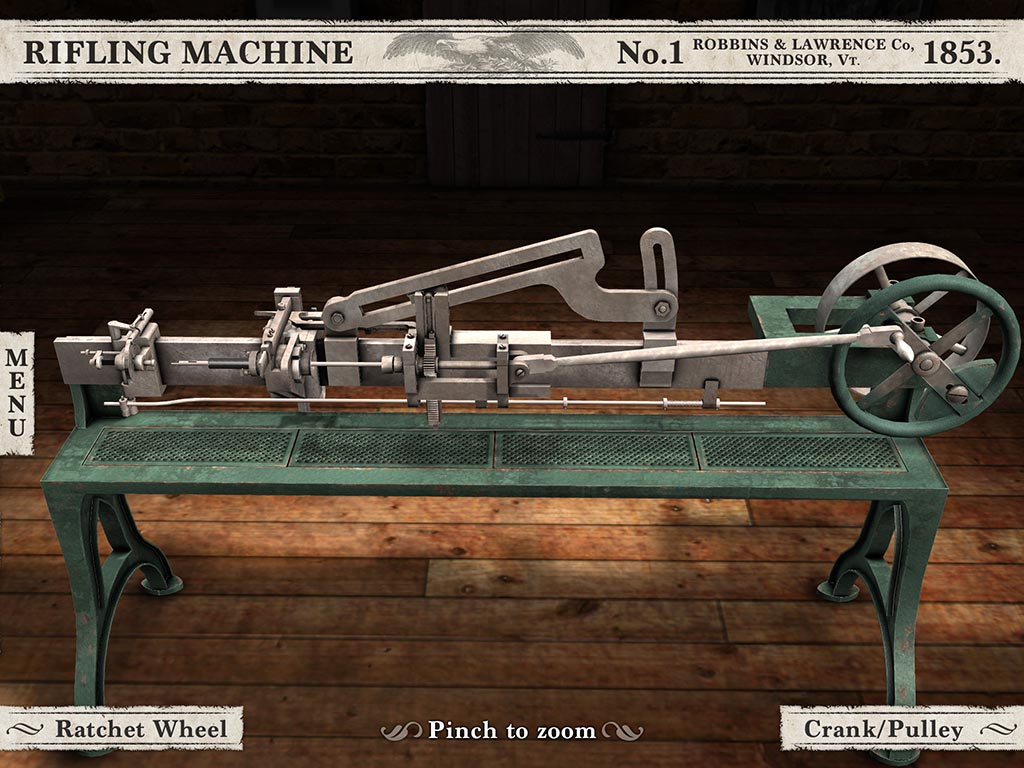 This educational app provides a detailed look at the 1853 Robins & Lawrence Rifling Machine using real-time 3D.